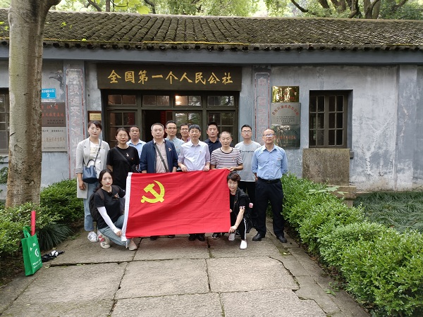 “组织起来走渔业合作道路,自力更生扬艰苦创业精神”是人民公社门口的对联,简洁明了的彰显了蚂蚁岛的渔业特色。1950年蚂蚁岛解放之初,岛上渔民生活极端贫困。但困难没有压倒蚂蚁岛人民,他们在党和政府领导下,开展生产自救。1951年2月,蚂蚁岛成立渔民协会,组织渔民恢复生产,掀起了一股互帮互助热潮。1952年2月,舟山第一个渔业生产互救组——刘岳明近洋涨网互助组在长沙塘成立,在那个年代,就有小小蚂蚁胜苏联的说法。自此,蚂蚁岛渔民翻开了自力更生、艰苦创业的新篇章。在文化礼堂中,党员观看了蚂蚁岛发展记录片,影片中记录了蚂蚁岛从一个贫穷落后的小渔岛逐步发展成舟山市红色旅游基地热门景点、船舶建设基地,虾皮加工基地。随后,党员们参观了纪念室和第一人民公社。人民公社中充满古朴的氛围,折射着时代的变迁。
