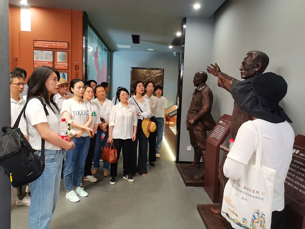 在解说员带领下,党员们参观了红二师纪念馆展厅。纪念馆中一些当时留存的照片、文件、实物、雕塑,真实地再现了十三军的英雄事迹和悲壮历程。通过观看十三军纪录影片,大家更加深入了解十三军的事迹,都表示深有感触。