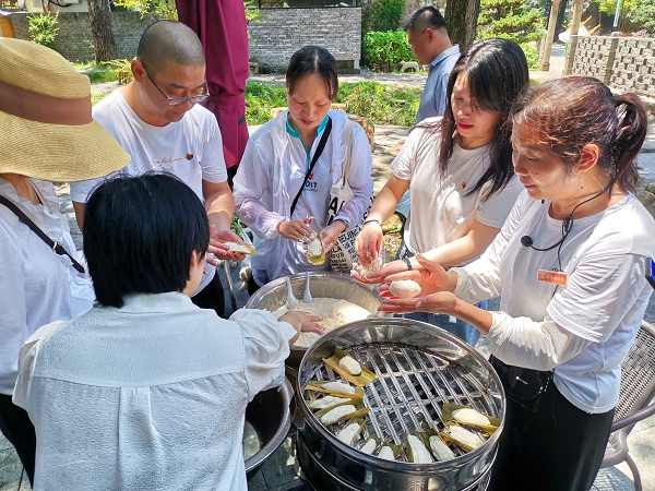 最后,党员们一起制作“红军包”,缅怀红军先辈。相传“红军包”是村民用桐树叶制作的干粮,深受红军喜爱。