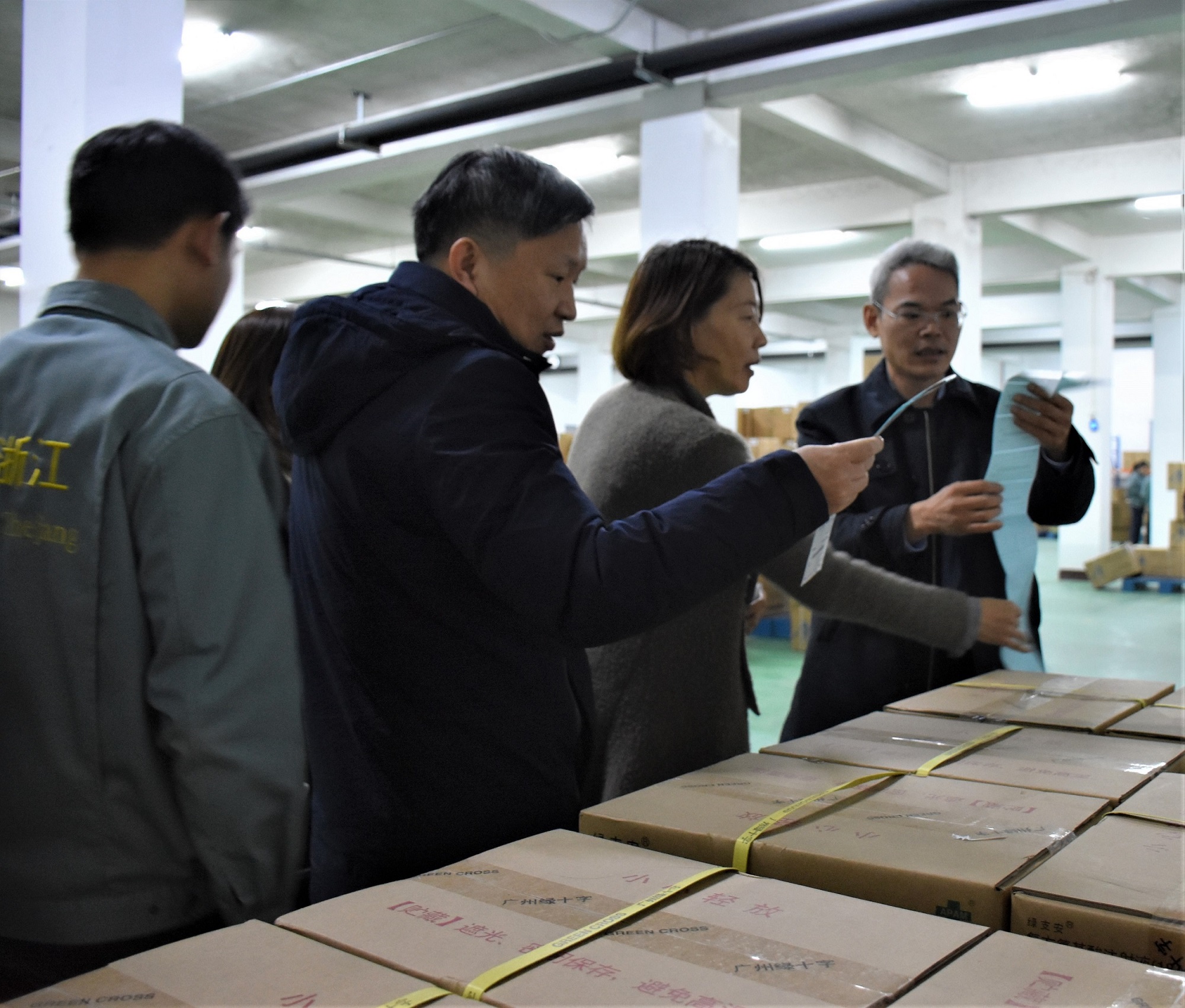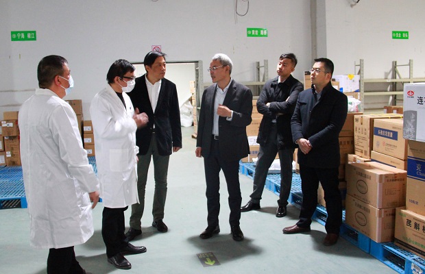 最后,蔡总、卢副部长到国控浙江现有物流仓库进行调研指导。蔡总参观了解了现有仓库布局、物流工艺设备、验收收货模式、物流人员情况等,逐一给予指导。蔡总指出,浙江公司要多措并举,不断提升企业竞争力,走好高质量发展道路。