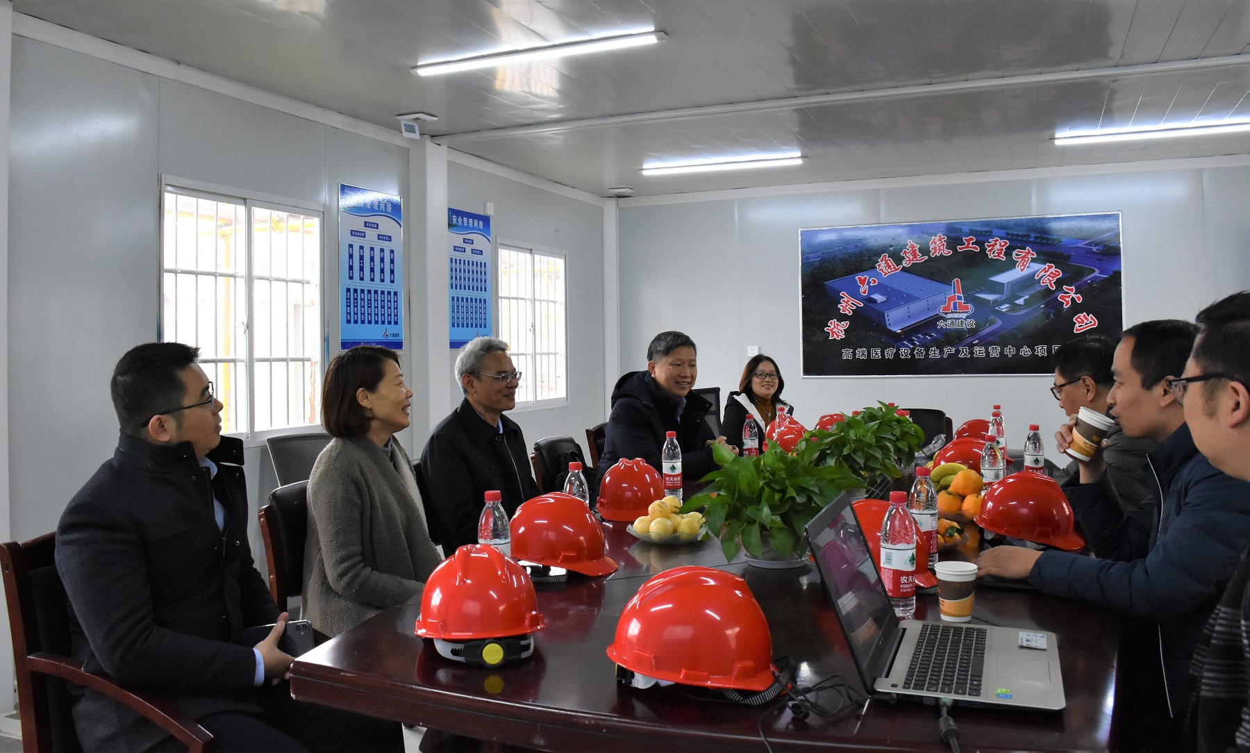 随后,蔡总、卢副部长前往国控浙江与复星国药携手打造的高端医疗设备生产及运营中心——萧山项目地进行现场调研,国控浙江常务副总黄国平、萧山项目负责人邵安利、总经理助理何苏苏等陪同。蔡总一行与复星商业流通产业发展集团董事长林林、工程总监张敏健进行了亲切会谈,蔡总充分了解了项目背景、规划定位、建设周期、物流工艺设备等情况并给予指导。