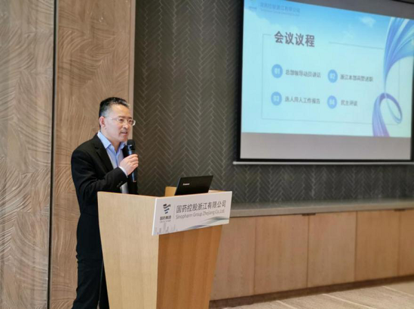 会议由国药控股人力资源部副部长陈咫宇主持,会议开始,首先由陈战宇副总裁进行了动员讲话。陈总对国控浙江2020年顺应浙江省医改政策变化,围绕高质量发展,聚焦市场份额提升,合并实现营业收入53.15亿,净利润4864万的成绩表示肯定,并对国控浙江在疫情期间的抗议表现给予了表扬。同时陈总指出:2021年希望国控浙江立足新发展阶段,贯彻新发展理念,构建新发展格局,不断增强核心竞争力,坚持高质量发展道路。