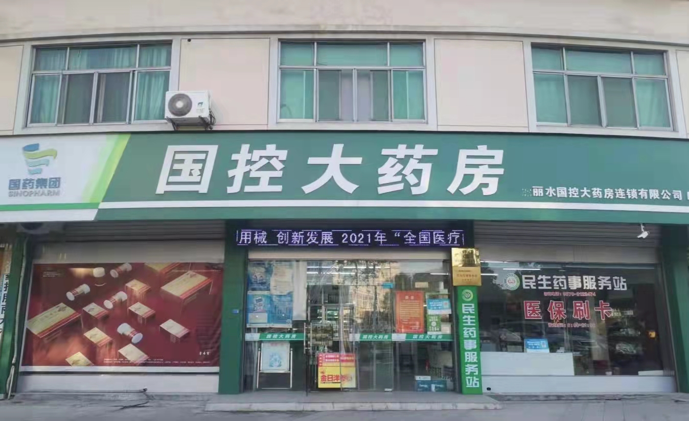 “民生药事服务站”是浙江省2021年十大民生实事之一。2021年5月7日,丽水国控大药房连锁有限公司下属门店医药商场、回春堂药店正式定点为民生药事服务站。店内不仅规范设置了药事指导区、服务操作区、科普宣传区、过期药品回收区等功能区,还为群众提供合理用药(械)指导、中药切片、中药打粉、中药熬胶、免费量血压、送药上门、代客寻药、药学志愿服务等特色健康服务,最大限度满足老百姓的用药需求,为缙云县老百姓提供家门口“一站式”医药服务。