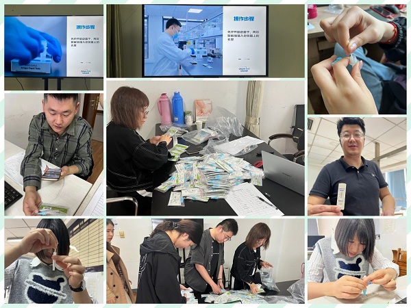 质量管理部联合总经理办公室第一时间将新冠病毒抗原检测试剂盒发给每一位员工并整理自测、结果上传教学视频方便员工自行检测。公司员工积极配合进行自测并上传自测结果。