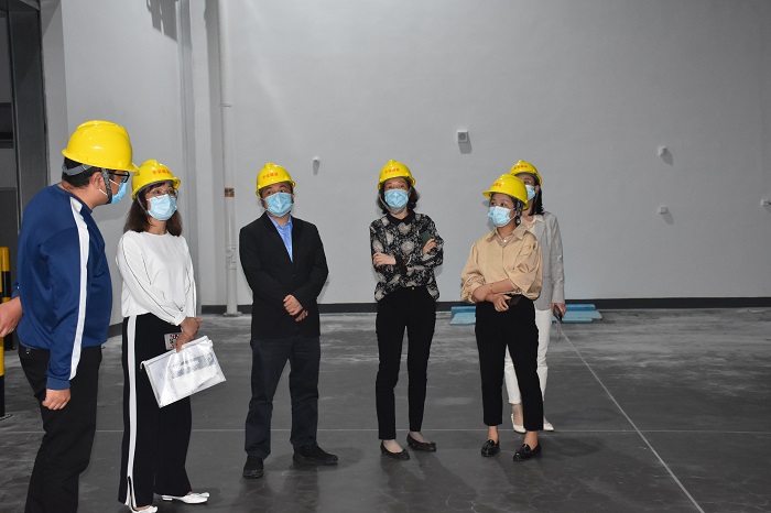 在物流中心仓库,万鹏龙全面调研药品的收货验收、储存养护、运输配送等工作,仔细检查防鼠防潮、避光遮光等措施,深入了解疫情防控工作情况,同时听取了质管、安全、物流工作的汇报。随后,前往正在建设的国控浙江高端医疗设备生产及运营中心调研指导。