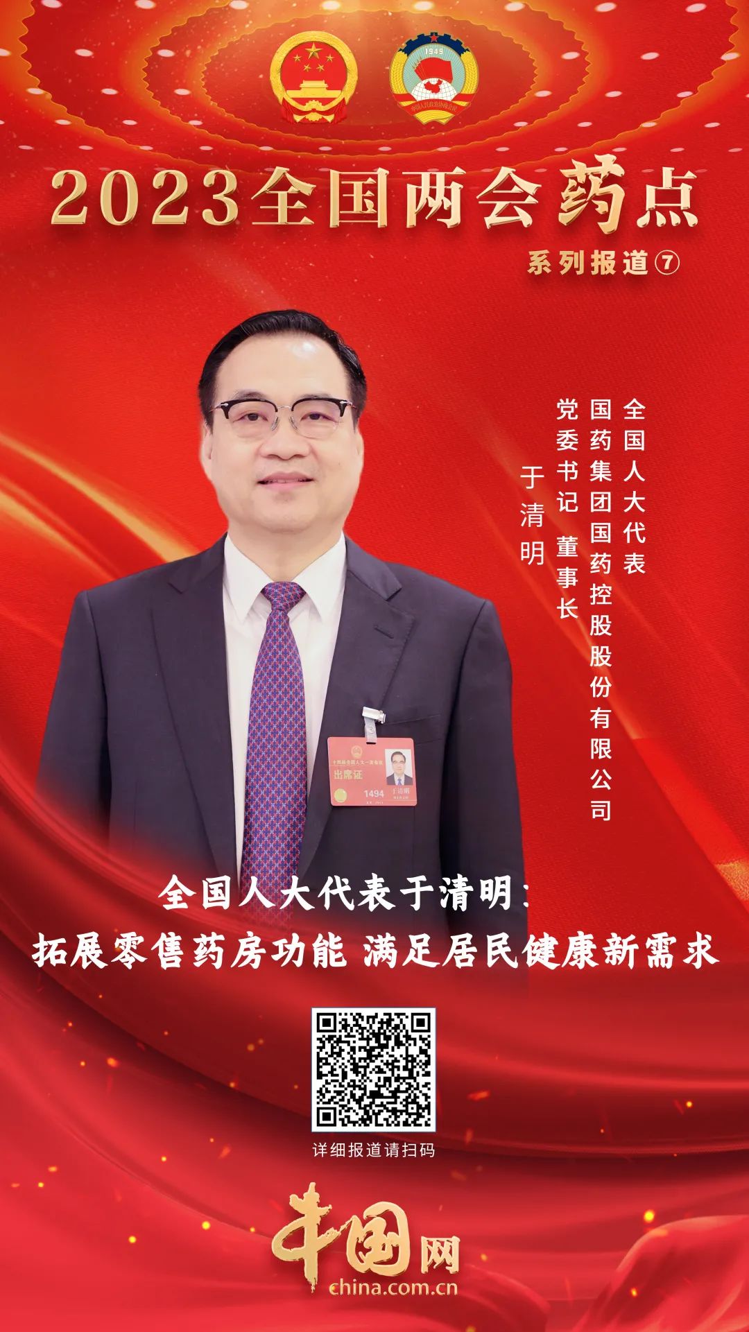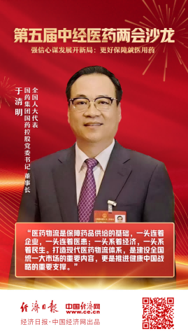 围绕彰显国资央企担当、打造现代医药物流体系助力全国统一大市场建设、大力支持高端医疗器械制造业发展、拓展零售药房社会功能满足居民健康服务新需求、发挥龙头企业作用健全医药物资储备体系、加快发展院外康复护理产业助力健康老龄化等热点话题,全国人大代表、国药集团国药控股股份有限公司党委书记、董事长于清明提交了多项建议。